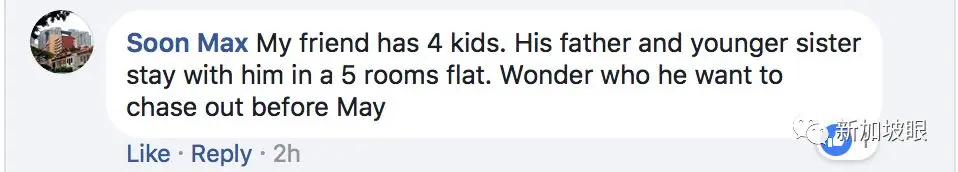 (我朋友有4个孩子,他爸爸和他妹妹也跟他们住在5房的组屋内。不知道他要在5月前把谁轰出去)(注:自住不限制,只是租房政策有调整)