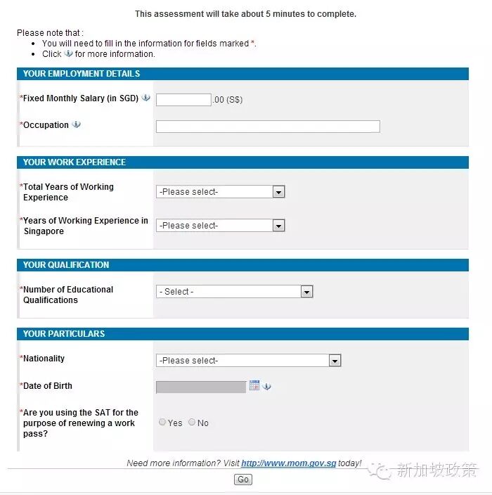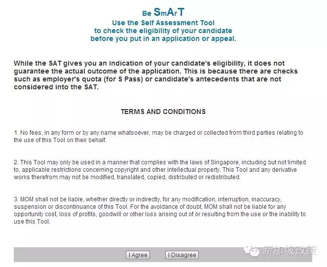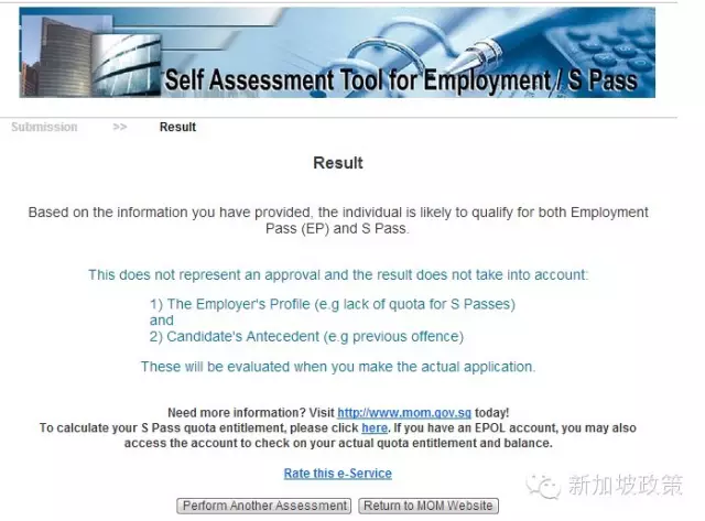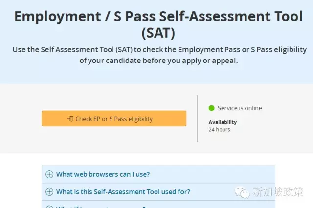有网友后台问起自己符合什么准证的问题。其实新加坡人力部网站上有EP/SP自测系统(Employment / S Pass Self-Assessment Tool (SAT)。申请者需要填写相关的资料便可以得知自己符合申请EP还是SP,还是两者都符合。下面介绍下怎么使用。