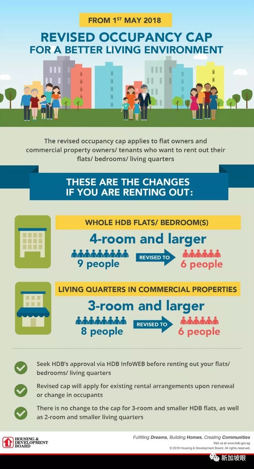 新加坡建屋局(HDB)向广大群众发布了一个爆炸性的租房条例,从2018年5月1日起,4房以上的组屋最多只能租给6个人了(原本可以租给9个人),简直是晴天霹雳啊~~好在3房以下的组屋租户人数限制不变。