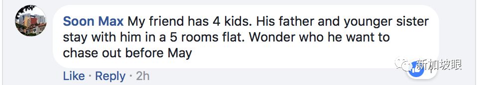 (我朋友有4个孩子,他爸爸和他妹妹也跟他们住在5房的组屋内。不知道他要在5月前把谁轰出去)(注:自住不限制,只是租房政策有调整)